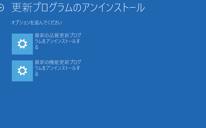 - アンインストールを実行する。 アップデートが不具合の原因であれば、アンインストールを行います。
