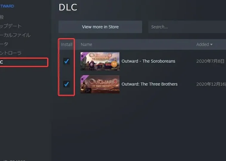 - DLCタブをクリックします。 詳細情報の中から「DLC」タブを見つけて選択します。
