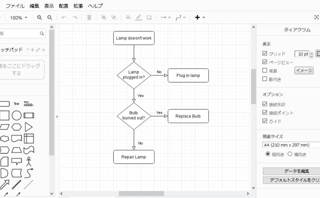 - ドラッグ&ドロップ: 図形や要素を直感的に配置できるインターフェース。