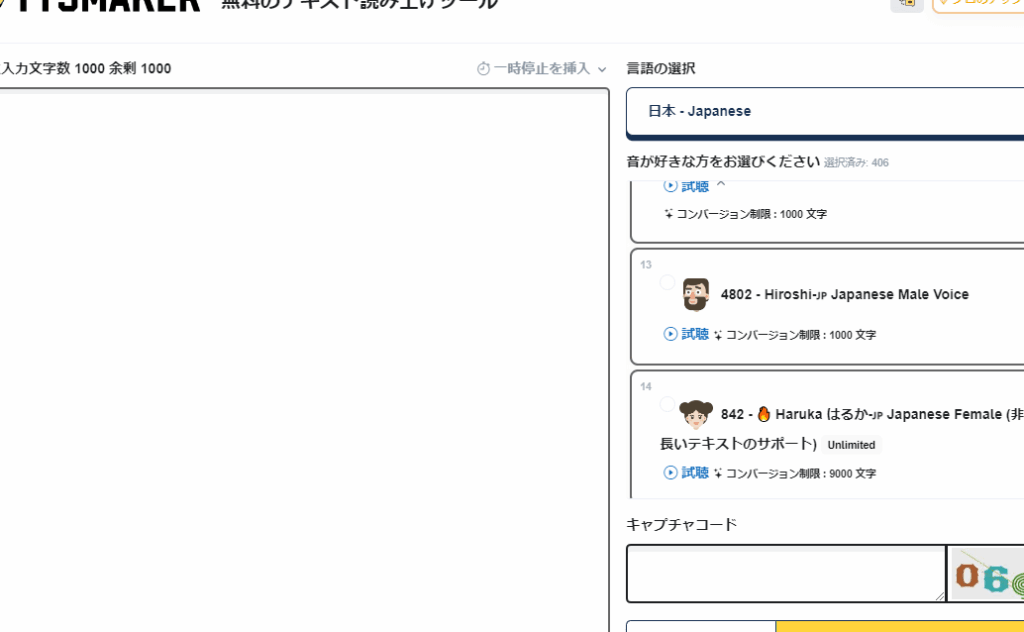 - 音声の選択: 男性や女性の音声を選べるオプションが豊富。