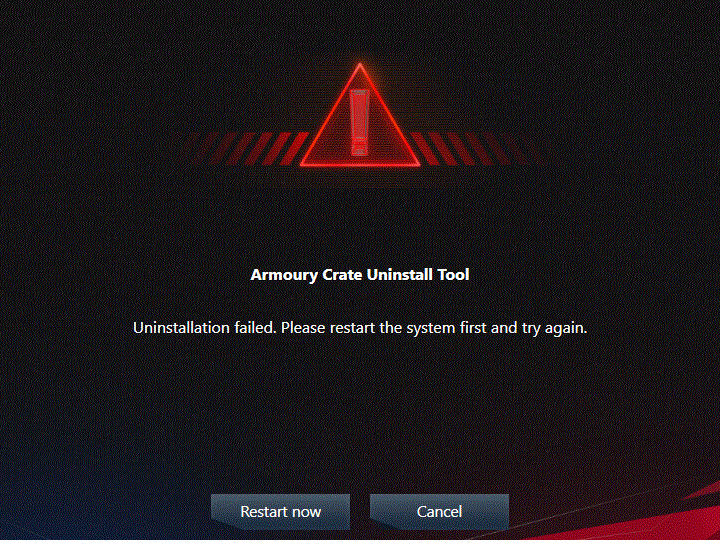 - アンインストールをクリックする:Armoury Crateの横にある「アンインストール」ボタンをクリックします。