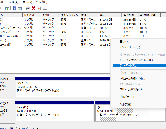 - 外部ストレージを用意します。 USBメモリや外付けハードドライブを使用します。