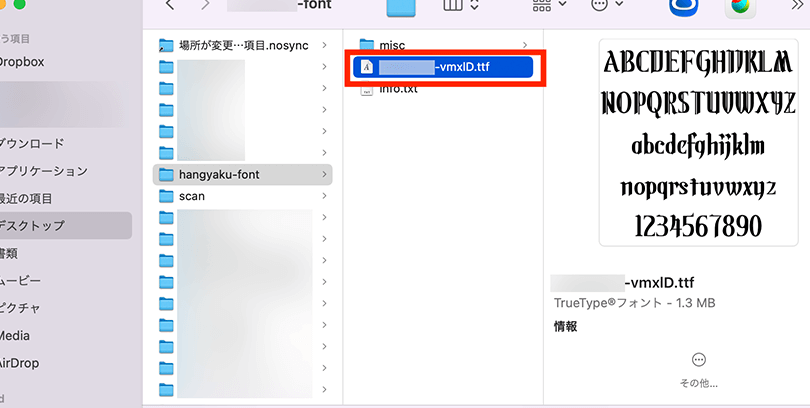 - フォントをインストールする。 ダウンロードしたフォントファイルをダブルクリックしてインストールする。