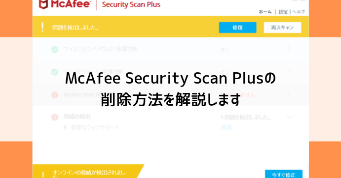 「McAfee Security Scan Plus」をアンインストールするための手順は以下の通りです。