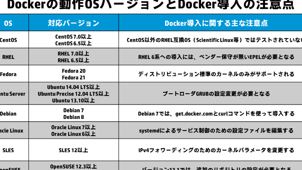 - カーネルバージョン: 3.10以上。