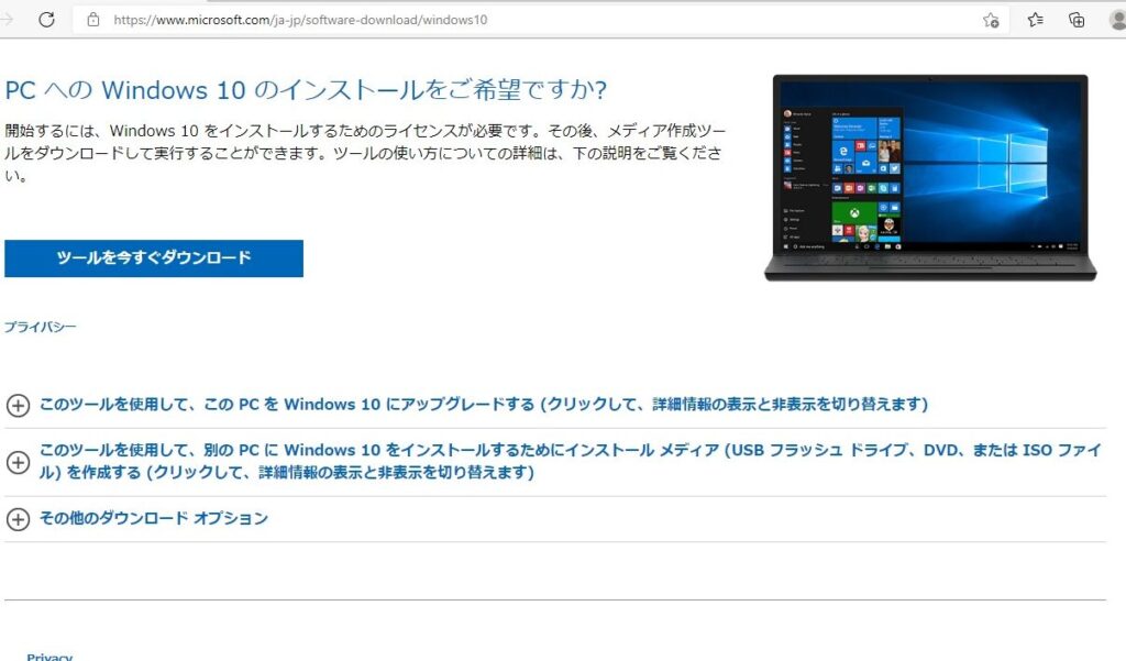 - Windows 10のメディア作成ツールをダウンロードする。 公式サイトから入手可能です。