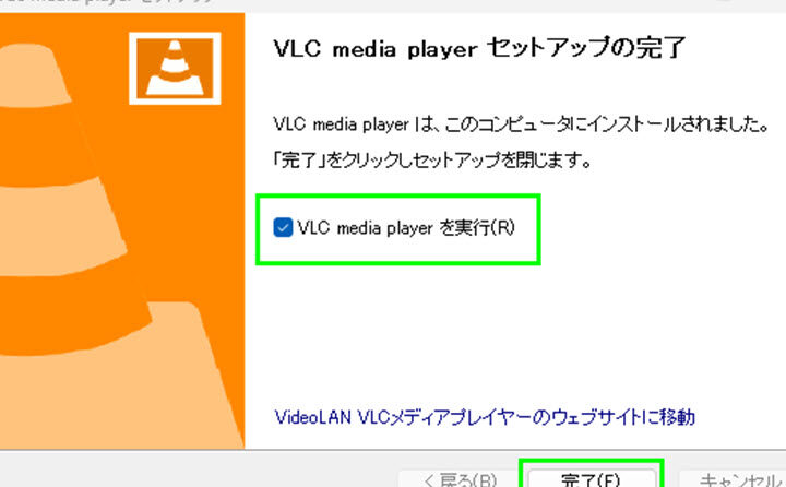 - VLCを起動する。 インストールが完了したら、VLCを開きます。