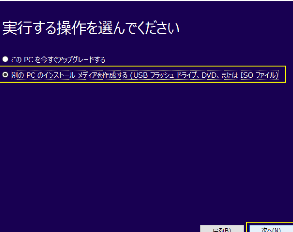- 再度メディアを作成する。 問題があれば、再度インストールメディアを作成します。