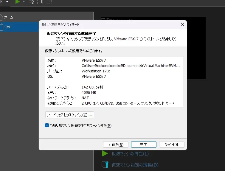 - 初期設定を行う。 ネットワーク設定やストレージの確認を行います。