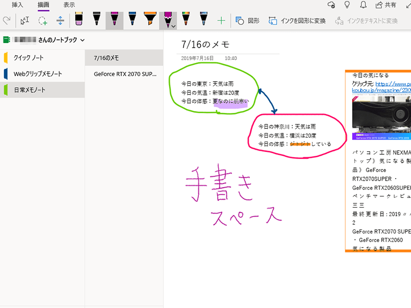 - ページを整理:セクションとノートブックを使用して、メモを効率的に整理します。