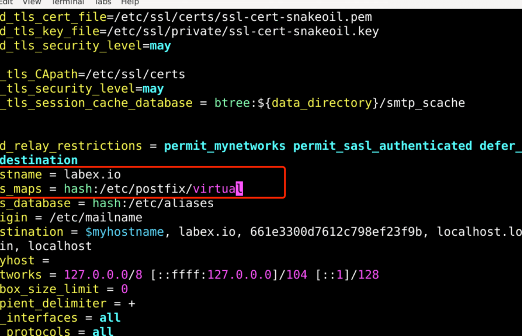 - メール配信の設定を行う。 「mydestination」で、受信するメールのドメインをリストします。例: mydestination = $myhostname, localhost, $mydomain