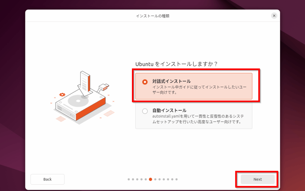 - インストールオプションを選択します。表示されるメニューから「Ubuntuをインストール」を選択します。