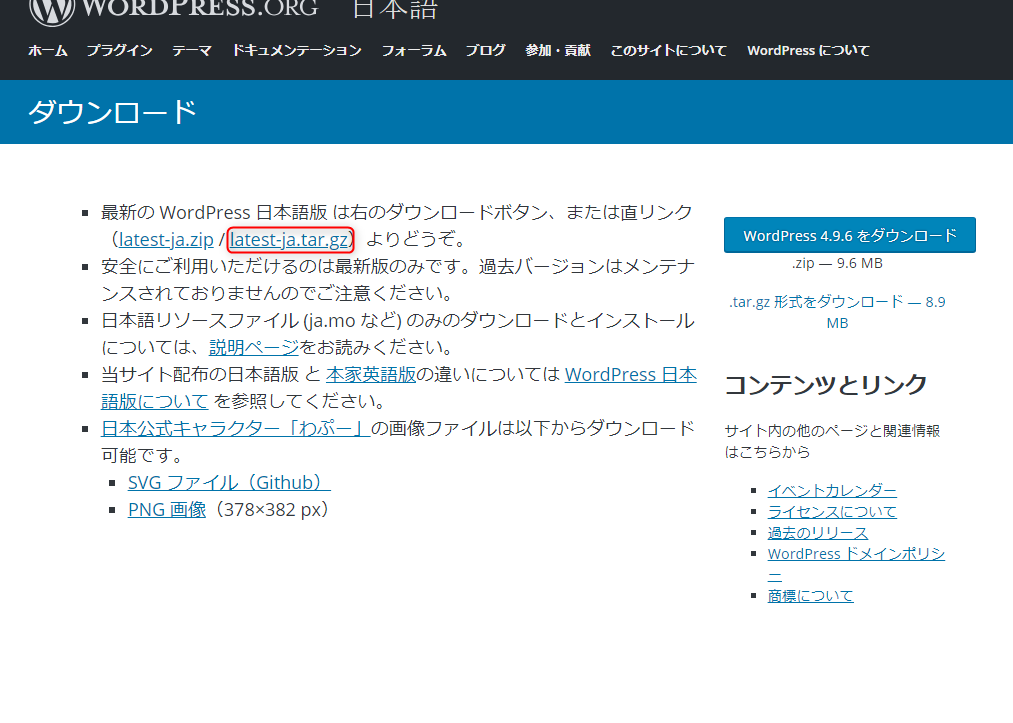 - WordPressのダウンロード: 公式サイトから最新のWordPressを取得する。