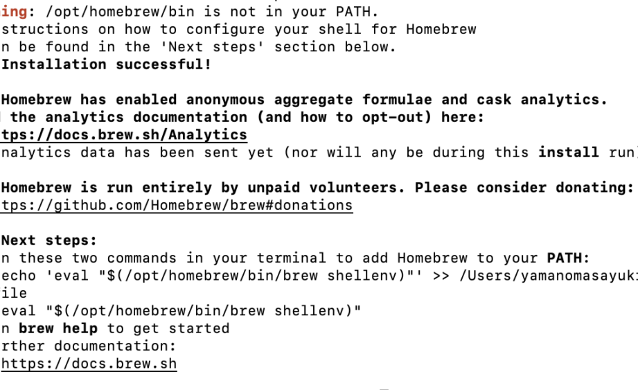 - パスを確認: `echo $PATH` コマンドを入力し、Homebrewのインストール場所が含まれているか確認します。通常は `/usr/local/bin` です。