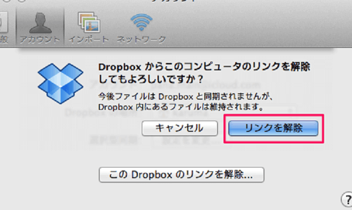 `rm -rf ~/Applications/Dropbox.app` - 関連ファイルも削除する。続いて以下のコマンドも入力し、Enterを押します。