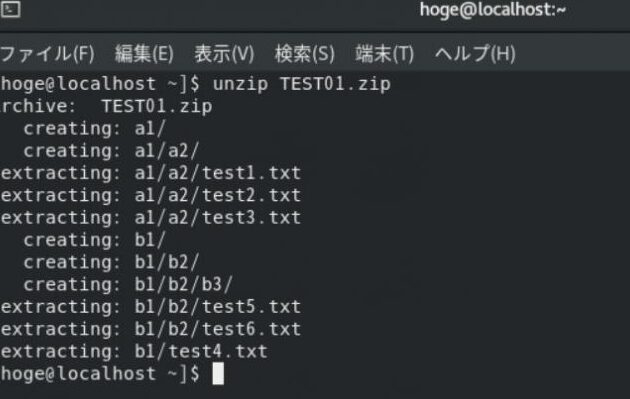 この手順により、test.txtというファイルがtest.zipとして圧縮されます。その後、生成されたzipファイルの内容を確認しましょう。
