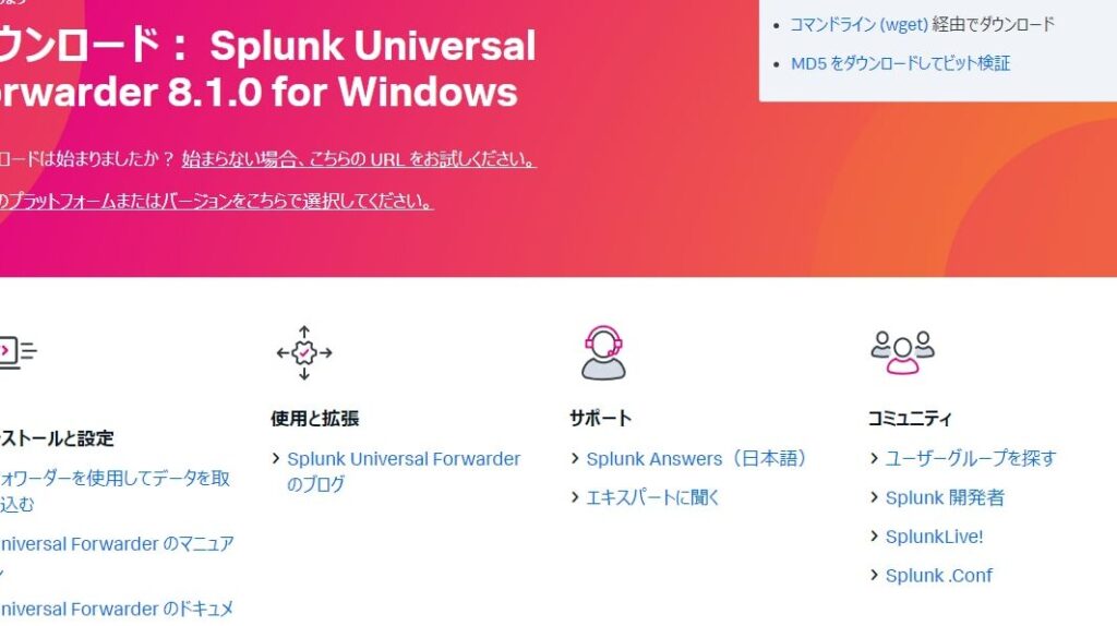 - 公式サイトにアクセスします。Splunkの最新バージョンが掲載されています。