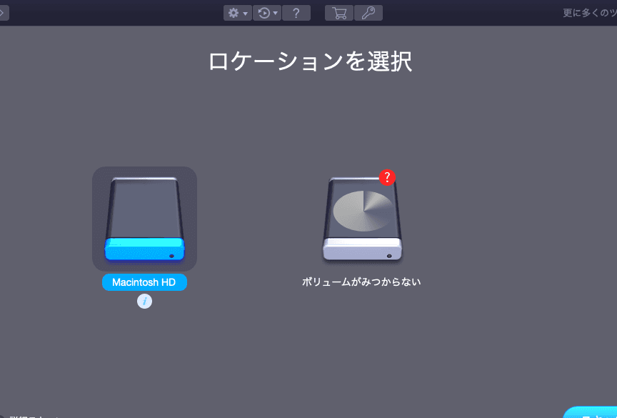 - Macintosh HDを選択する。 左側のパネルから対象のディスクを選びます。