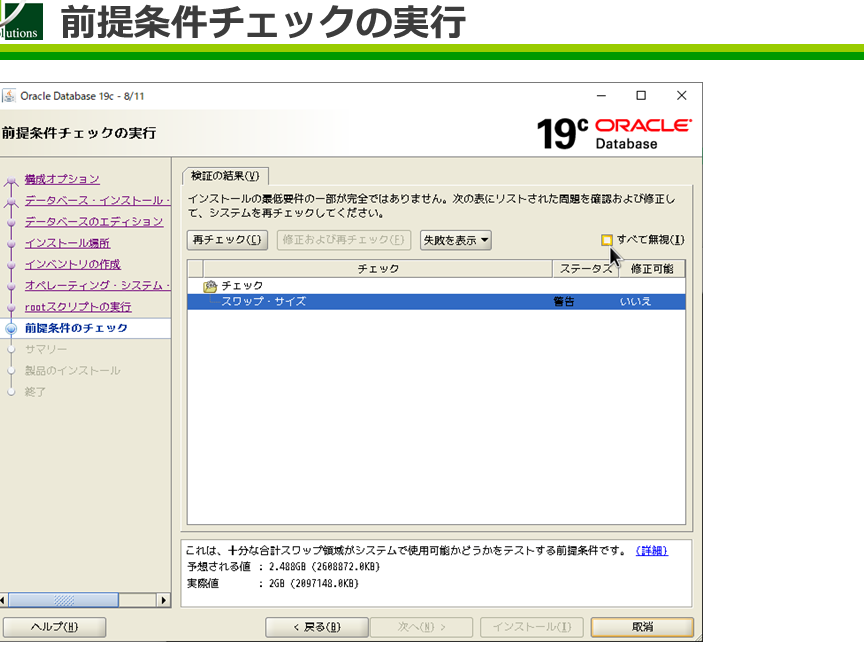 Oracle 19cのインストール中にはさまざまな問題が発生することがあります。ここでは、よくあるトラブルとその解決策を提示します。