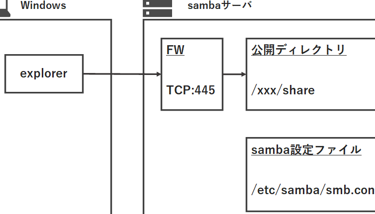 - ネットワークからのアクセスをテストする。 Samba共有に接続できるか確認。