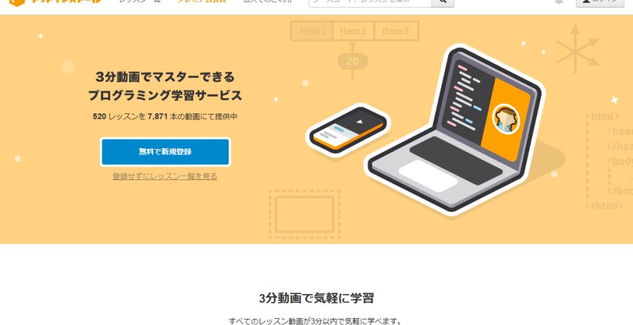 - 短い動画で効率的に学べる。 1つのレッスンが短いため、気軽に学習できます。