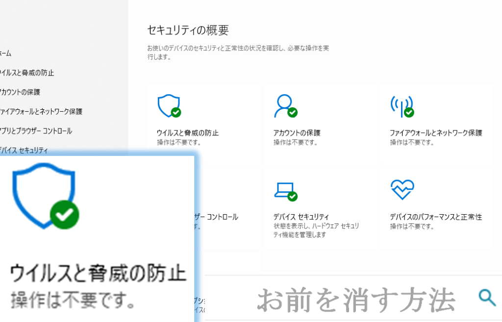 - ウイルスと脅威の防止を選ぶ。