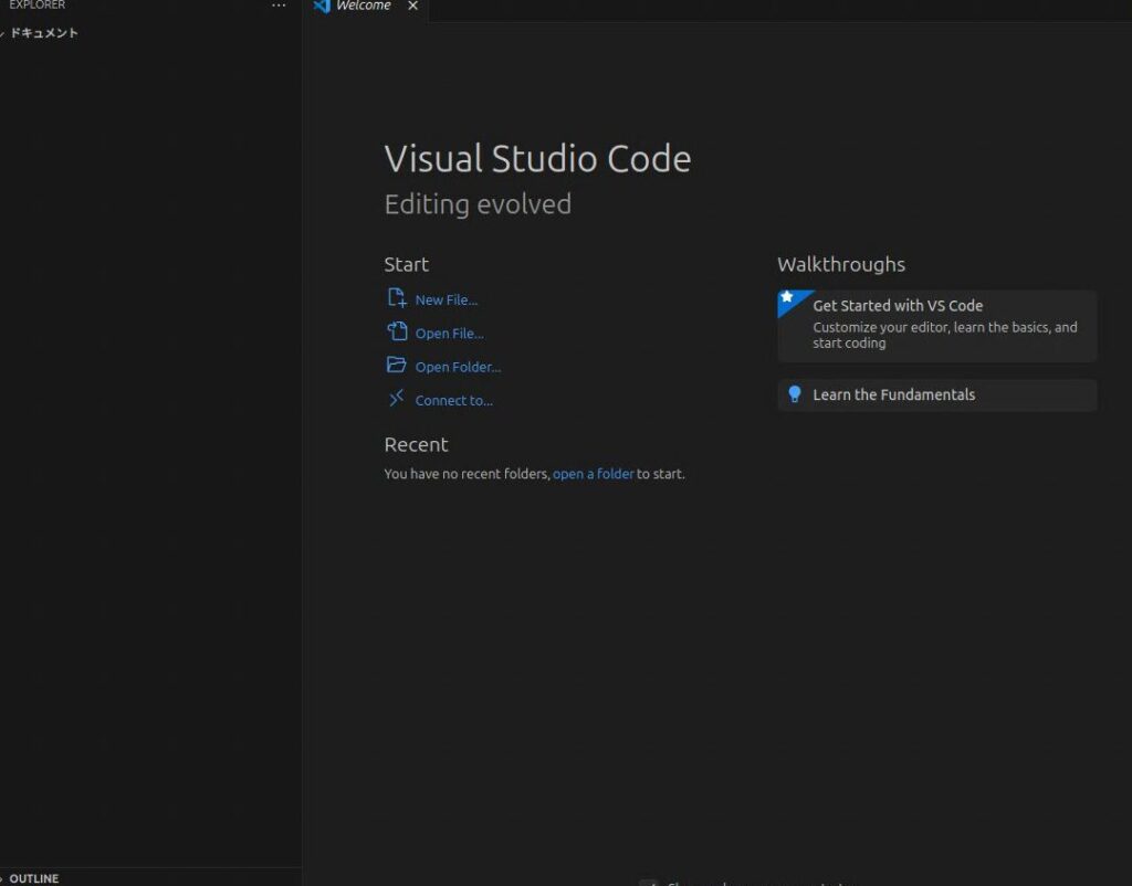 - VSCodeを起動: インストールが完了したら、VSCodeを起動します。ターミナルに「code」と入力すれば、エディタが開きます。