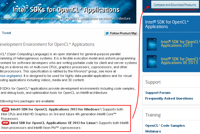 - OpenCL SDK: プラットフォームに合ったSDKをダウンロード。