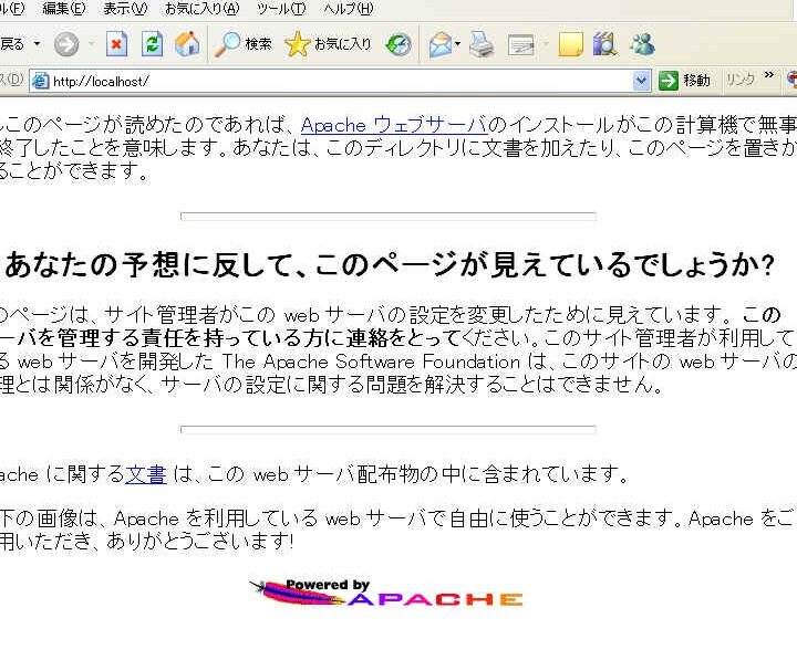 - ブラウザでの確認: インストールが成功したか確認するため、ブラウザに「http://localhost」と入力します。