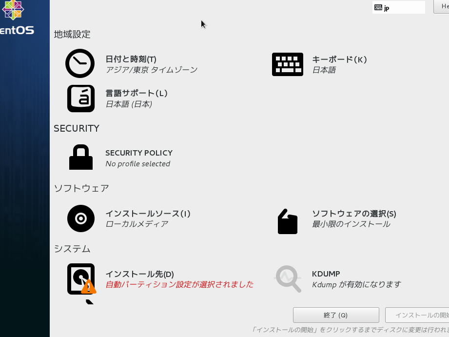 Cent OS インストール手順