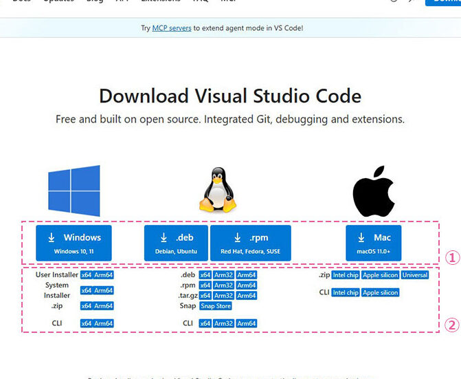 - 公式サイト: Visual Studio Codeの公式サイトにアクセスします。