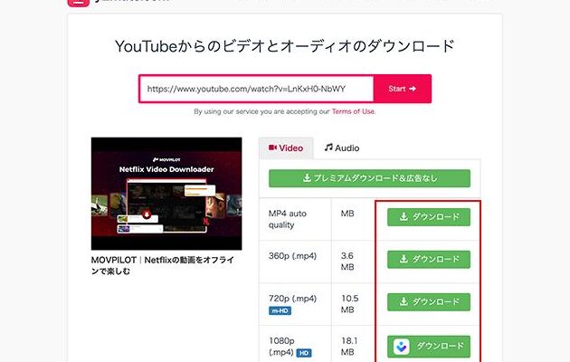 - 高画質でダウンロード:720p、1080p、さらには4K画質の動画も選択できます。