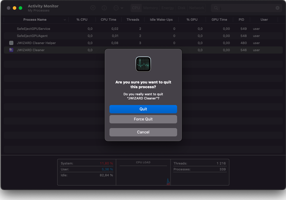 - 削除したいアプリを見つける:アクティビティモニタ内で該当アプリを探します。