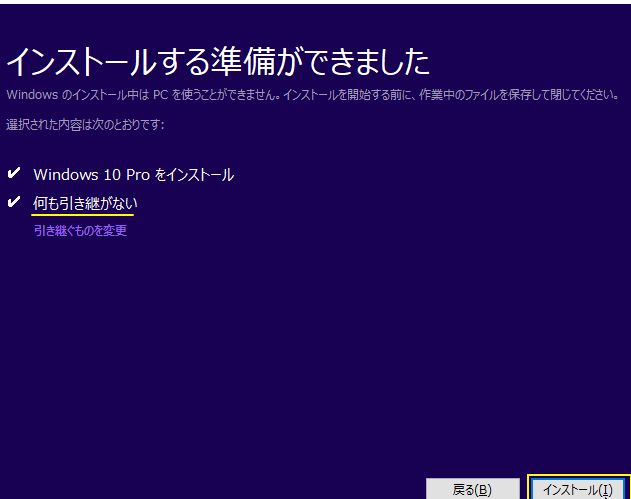 Windows10 インストールの準備をしています