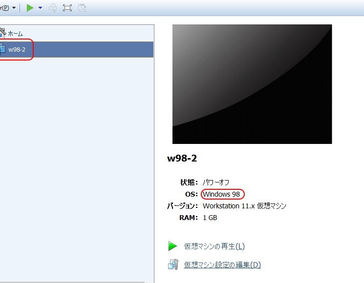 - 仮想マシンを起動します。まず、対象の仮想マシンを起動します。