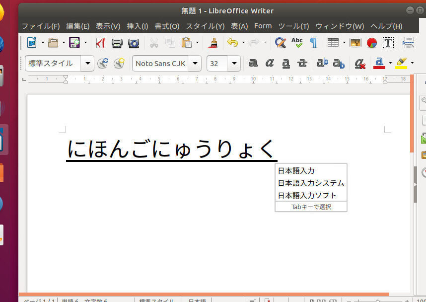 - 日本語入力をテスト。 テキストエディタを開き、日本語で入力してみます。
