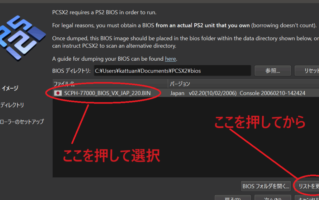 特定のサイトから PS2 の BIOS ファイルを入手します。著作権に注意してください。
