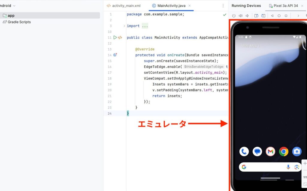 - エミュレータを起動し、Googleアカウントにログインします。
